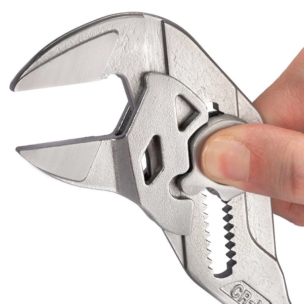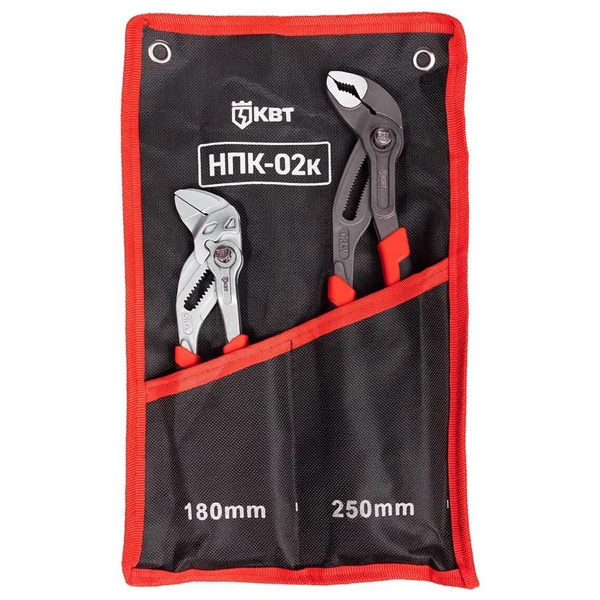 Набор переставных клещей НПК-02К серии ПРОФИ с удобной кнопочной фиксацией.Область применения: монтаж трубных соединений, работа с резьбовым крепежом, аккуратный и бережный монтаж декоративных гаек и фитингов.Рукоятки: двухкомпонентные, эргономичные, с антискользящим покрытием для надежного хвата.