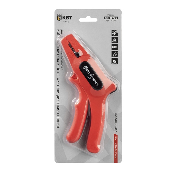 Универсальный ручной автоматический инструмент для снятия изоляции с проводов до 6мм2 106408 Диэлектрический автоматический торцевой стриппер предназначен для профессионального снятия изоляции с одножильных и многожильных проводов при выполнении электромонтажных работ. Инструмент допускается к использованию при работе под напряжением до 1000 В (при соблюдении требований техники безопасности).