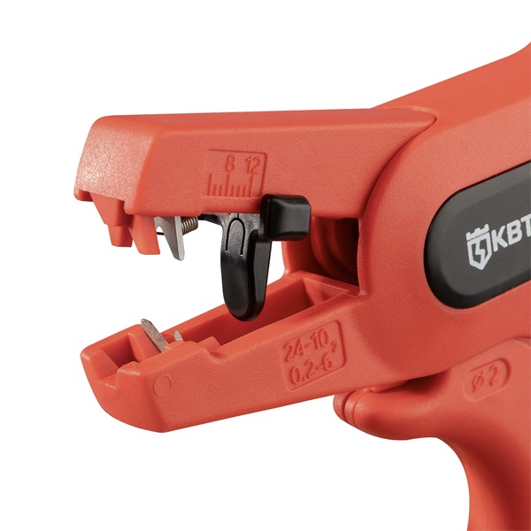 Конструкция оснащена V-образными лезвиями, которые обеспечивают точный и аккуратный надрез без повреждения токопроводящей жилы. Автоматический механизм самостоятельно настраивается под необходимый диаметр и толщину изоляции, что значительно ускоряет процесс работы и исключает необходимость ручной регулировки.
