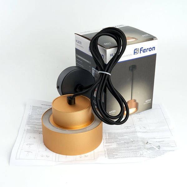 48411 Светильник потолочный на подвесе Feron HL3678 GX53 max 12W 230V золото D75*H110 фото 7