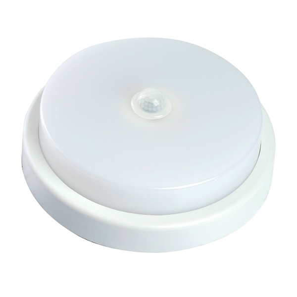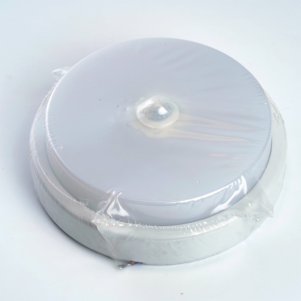 Технические характеристики: Мощность: 12 Вт Номинальное напряжение: 200-240 Вольт Световой поток: 960 лм Цветовая температура: 6500К Индекс цветопередачи: >80 Ra Угол рассеивания: 120 градусов Степень защиты: IP65 Материал: пластик Диаметр: 175 мм Высота: 58 мм Значение пороговой освещенности: 20 Лк (Встроенный ИК датчик сработает при освещенности менее 20 лк с задержкой в 20 сек.) Время задержки: 20 сек Расстояние обнаружения: до 8 м Угол обнаружения: 120 градусов