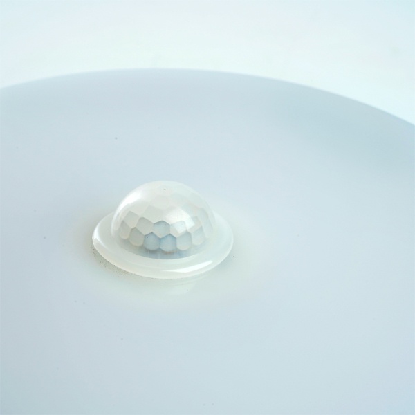 Встроенный инфракрасный датчик движения реагирует на появление человека в зоне действия, мгновенно активируя освещение. Дополнительно предусмотрен датчик освещённости, который предотвращает включение света при достаточном уровне естественного освещения, что особенно актуально в дневное время и помогает избежать лишних затрат энергии.