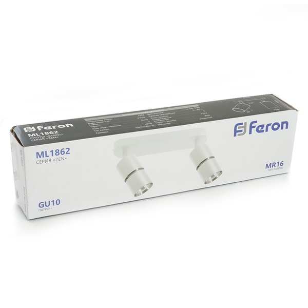 Накладной, поворотный, ламповый светильник акцентного освещения, под 2 лампы с цоколем GU10 мощностью до 35 Ватт, цвет белый/хром 48644 Трековые системы с использованием светильников Feron - это современное и универсальное решение для освещения коммерческих пространств. Они широко применяются в магазинах, шоурумах, галереях и других объектах, где важно грамотно расставить световые акценты и направить внимание посетителей на ключевые зоны или товары.