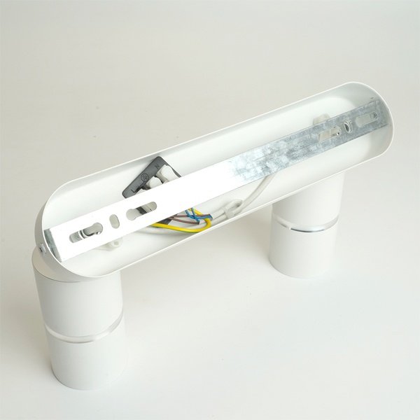 Характеристики: Максимальная мощность лампы - 35 Вт (лампы в комплект не входят) Напряжение - 230 В Тип лампы - MR11 Патрон - 2хGU10 Материал корпуса - алюминий, акрил Тип - Поворотный Цвет - белый/хром Размер - 260х260х165 мм
