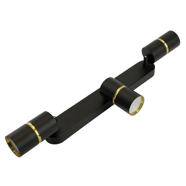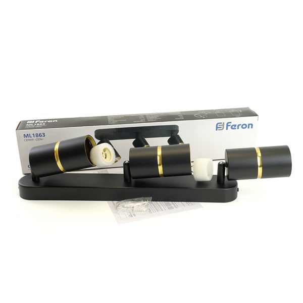 Накладной, поворотный, ламповый светильник акцентного освещения, под 3 лампы с цоколем GU10 мощностью до 35 Ватт, цвет черный/золото 48645 Трековые системы с использованием светильников Feron - это современное и универсальное решение для освещения коммерческих пространств. Они широко применяются в магазинах, шоурумах, галереях и других объектах, где важно грамотно расставить световые акценты и направить внимание посетителей на ключевые зоны или товары.