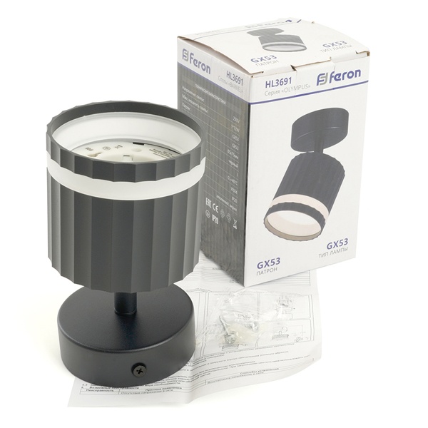 Накладной ламповый светильник света Ферон HL3691, поворотный под лампу GX53 цвет черный 48682 Потолочные светильники Feron предназначены для создания как общего, так и акцентного освещения в жилых помещениях. Они помогают равномерно осветить пространство или выделить отдельные зоны, добавляя интерьеру глубину и выразительность.