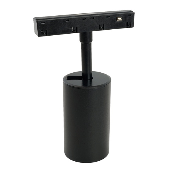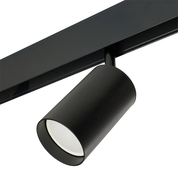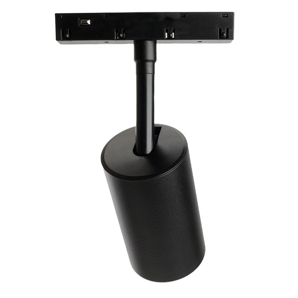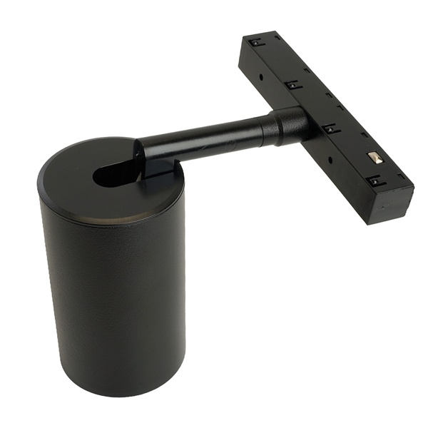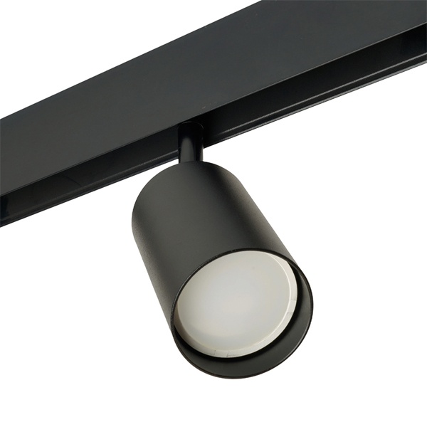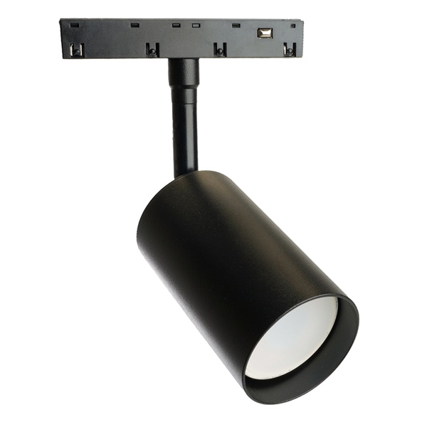 Особенности: Удобство регулировки направления светового луча: светильник вращается на 350° по горизонтальной оси и на 90° по вертикальной оси Прочный и легкий алюминиевый корпус Простой монтаж и надежная фиксация Характеристики: Максимальная мощность: 15 Вт Тип лампы: MR16 Патрон GU10 Цвет корпуса: черный Степень защиты: IP40 Тип подключения к сети: на однофазный шинопровод Размеры: D56x168 мм