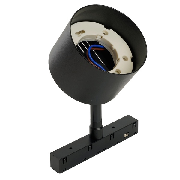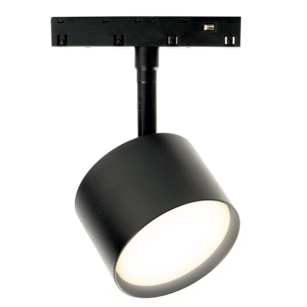 Особенности: Удобство регулировки направления светового луча: светильник вращается на 350° по горизонтальной оси и на 90° по вертикальной оси Прочный и легкий алюминиевый корпус Простой монтаж и надежная фиксация Характеристики: Максимальная мощность: 15 Вт Патрон: GX53 Цвет корпуса: черный Материал: алюминий Степень защиты: IP40 Тип подключения к сети: на однофазный шинопровод Размеры: D80x127 мм