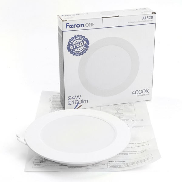 Светодиодный светильник Даунлайт Ферон AL528 скрытой установки, 30Вт нейтральный белый свет, белого цвета, матовый рассеиватель 48876 Встраиваемый светодиодный светильник AL528 - это практичное и доступное решение для организации качественного освещения как в жилых интерьерах, так и в общественных пространствах. Он отлично подойдёт для квартир, офисов, коридоров, торговых залов и других помещений, где важны надёжность и комфортный свет.