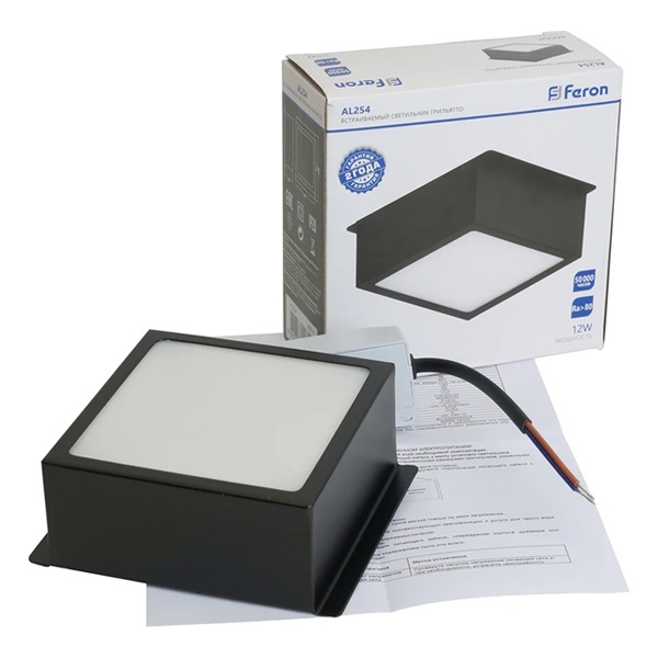 • Светильник светодиодный Feron AL254 12W 6500K 960Lm 110° черный, грильято 89x89 мм с драйвером