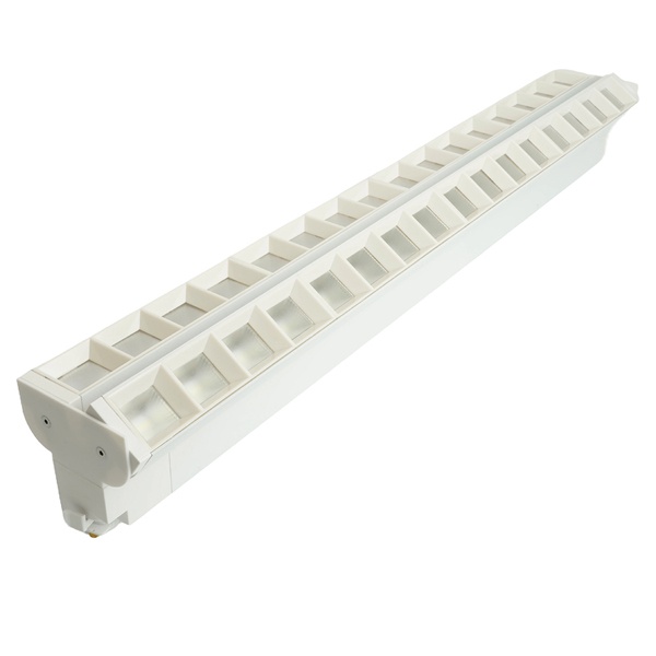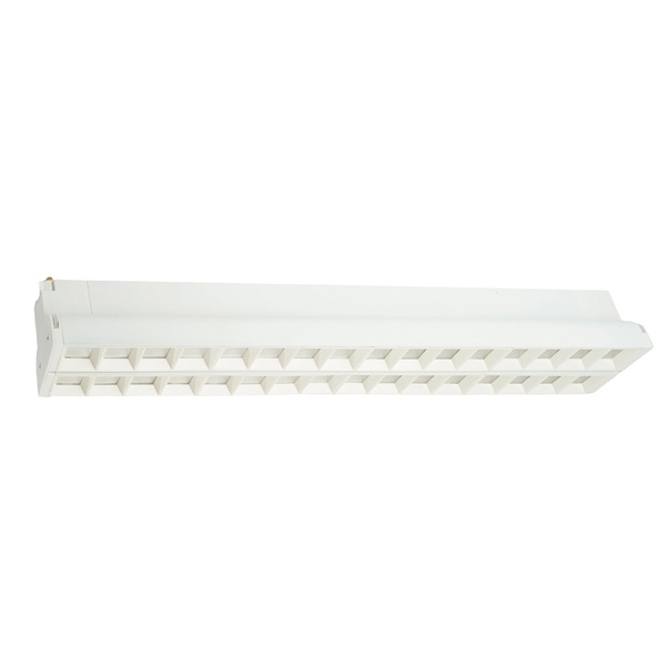 Характеристики: Мощность: 2*30 Вт Напряжение: 220 В Световой поток: 6600 лм Цветовая температура: 6500 К Угол освещения: 60° Материал корпуса: алюминий Цвет корпуса: белый Способ подключения: к однофазному шинопроводу Размеры: 547х68х75 мм