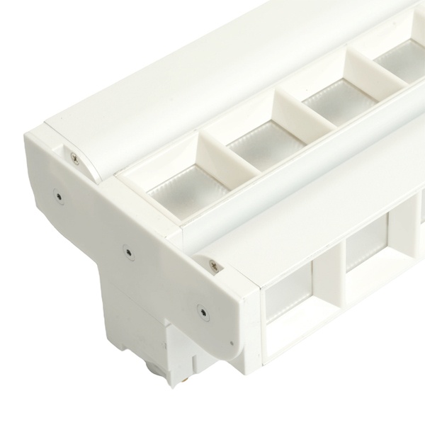 Характеристики: Мощность: 3*30 Вт Напряжение: 220 В Световой поток: 9900 лм Цветовая температура: 4000 К Угол освещения: 60° Материал корпуса: алюминий Цвет корпуса: белый Способ подключения: к однофазному шинопроводу Размеры: 547х103х75 мм