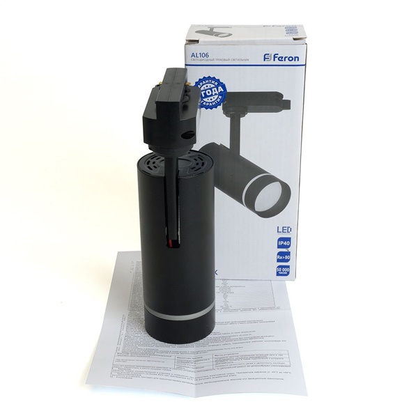 Черный трековый однофазный светодиодный светильник AL106 Ферон, мощность 12Вт, теплый белый свет с углом рассеивания 80 градусов 51010 Удобство регулировки направления светового потока делает этот светильник универсальным инструментом для создания идеальной атмосферы: он свободно вращается на 360° по горизонтали и наклоняется до 90° по вертикали, позволяя точно направить свет туда, где он действительно нужен - будь то рабочая зона, декоративный элемент или картина на стене.
