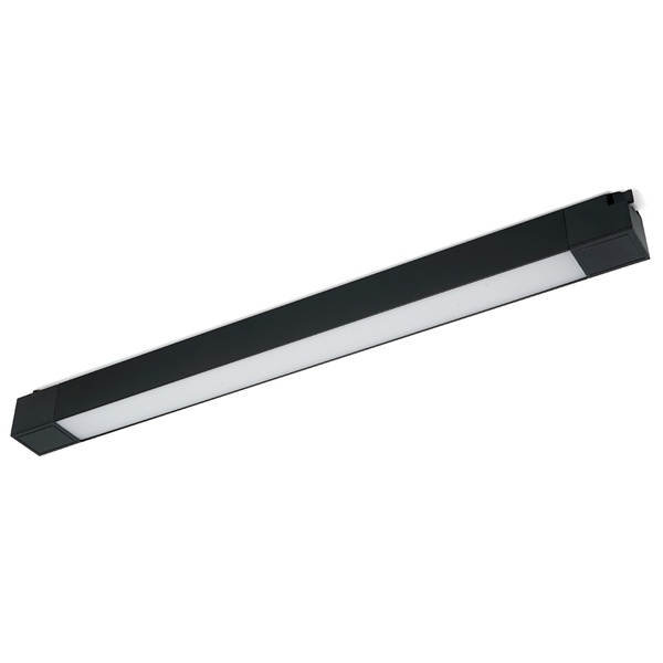 Особенности: Высокая цветопередача: >80 Перемещение светильника по всей длине шинопровода, позволяет менять акценты освещения в зависимости от перестановок в интерьере Простой монтаж и надежная фиксация Характеристики: Мощность: 30 Вт Напряжение: 170-265 В Световой поток: 2100 лм Цветовая температура: 2700 К Угол освещения: 120° Материал корпуса: алюминий Цвет корпуса: черный Степень защиты: IP40 Способ подключения: к однофазному шинопроводу Размеры: 41х478х33 мм