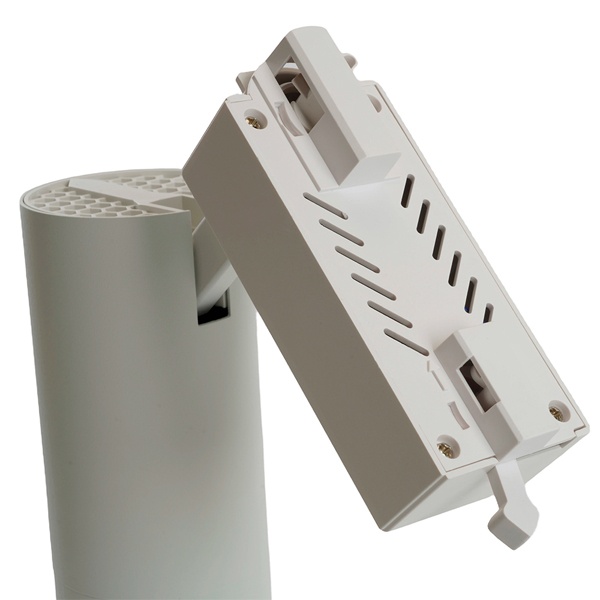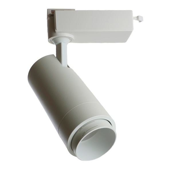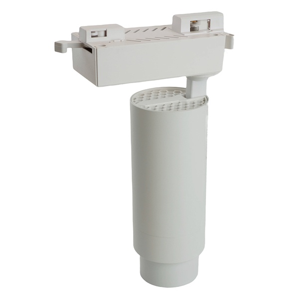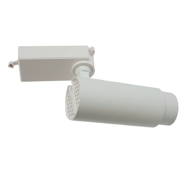 Характеристики: Мощность: 20 Вт Напряжение: 170-260 В Световой поток: 1400 Лм Цветовая температура: 4000 К Степень защиты: IP40 Угол освещения: 15-60° Материал: Алюминий Цвет: Белый Способ подключения: к однофазному шинопроводу Габаритные размеры: 165х65х150 мм