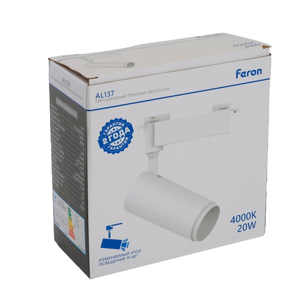 Трековый светодиодный светильник Ферон AL137 на однофазный шинопровод, мощностью 20 Ватт, нейтральный белый свет, изменяемый угол освещения 15-60, белый корпус 51175 Это один из самых удобных и современных вариантов для создания акцентного освещения в интерьере. Такие светильники позволяют точно регулировать направление светового потока, выделяя ключевые зоны и подчёркивая важные детали - будь то декоративные элементы, мебель или архитектурные особенности пространства.