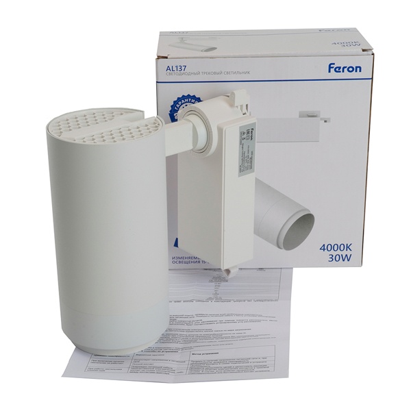 Трековый светодиодный светильник Ферон AL137 на однофазный шинопровод, мощностью 30 Ватт, нейтральный белый свет, изменяемый угол освещения 15-60, белый корпус 51177 Это один из самых удобных и современных вариантов для создания акцентного освещения в интерьере. Такие светильники позволяют точно регулировать направление светового потока, выделяя ключевые зоны и подчёркивая важные детали - будь то декоративные элементы, мебель или архитектурные особенности пространства.