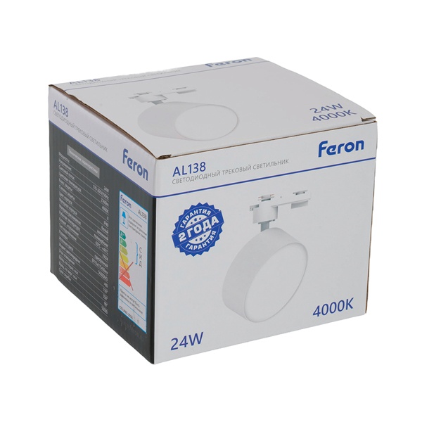 Трековый светодиодный светильник Ферон AL138 на однофазный шинопровод, мощностью 24 Вт, нейтральный белый свет, угол освещения 110 градусов, белый корпус 51181 Это один из самых удобных и современных вариантов для создания акцентного освещения в интерьере. Такие светильники позволяют точно регулировать направление светового потока, выделяя ключевые зоны и подчёркивая важные детали - будь то декоративные элементы, мебель или архитектурные особенности пространства.