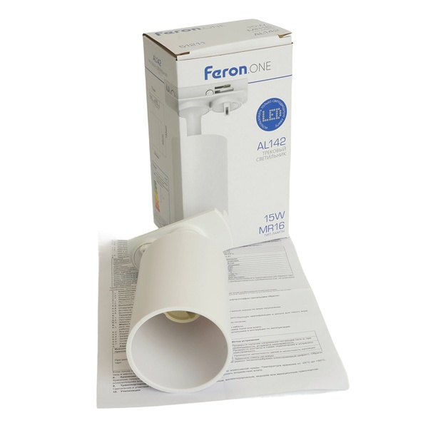 51211 Светильник трековый Feron AL142 под лампу MR16 15W 230V GU10 однофазный белый D60*H140