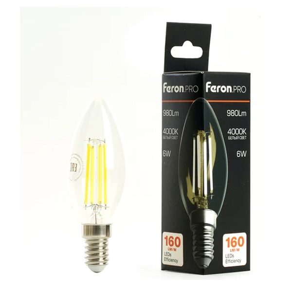Энергосберегающая LED лампочка свеча с нитевидными светодиодами, мощностью 6 Ватт, с цоколем E14, нейтральный белый свет, матовая колба 51245