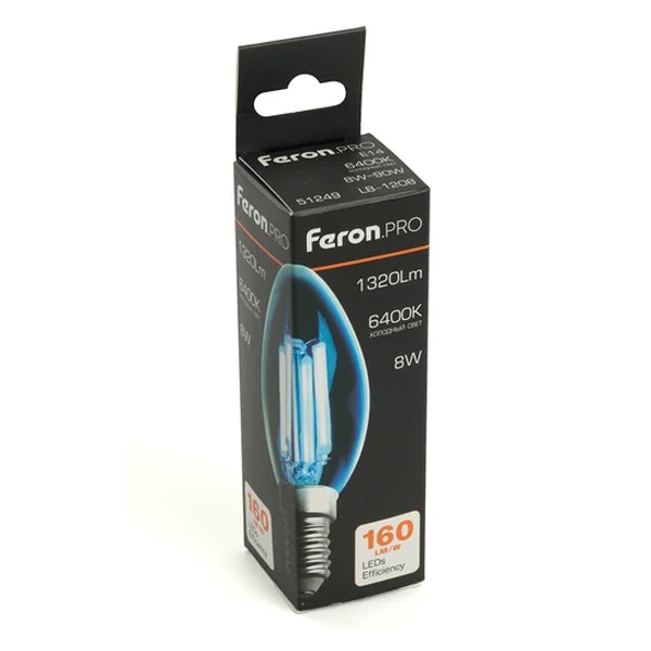 Энергосберегающая LED лампочка свеча с нитевидными светодиодами, мощностью 8 Ватт, с цоколем E14, холодный дневной свет, матовая колба 51249