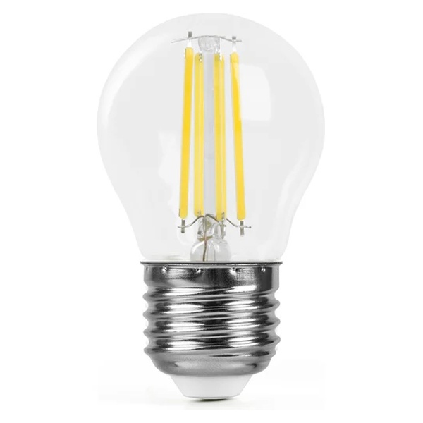 Филаментная лампочка шарик Ферон с нитевидными светодиодами, мощностью 8 Ватт, с цоколем E27, холодный дневной свет, прозрачная колба 51255