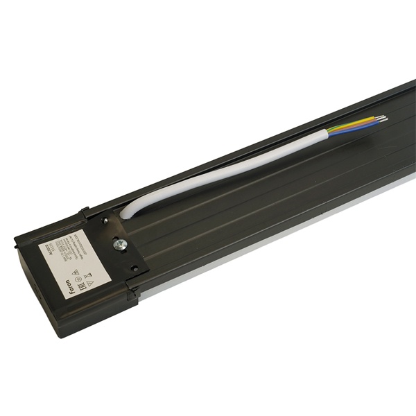 Черный линейный светодиодный светильник накладного исполнения Ферон AL5020 с матовым рассеивателем, мощностью 36 Ватт белого света 51339 Светильник AL5020 предназначен для эффективного внутреннего освещения жилых и общественных пространств. Он идеально подходит для использования в офисах, торговых залах, подсобных помещениях, коридорах, на лестничных пролётах и в других зонах с высокой проходимостью.