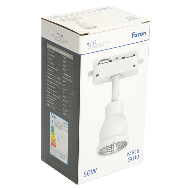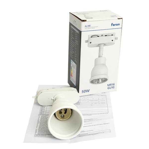 Трековый поворотный светильник Ферон AL199 на однофазный шинопровод, для ламп MR16 с цоколем GU10, максимальной мощностью 50 Вт, белый цвет 51666 Трековые светильники TM FERON - это современное и универсальное решение для организации акцентного освещения в интерьере. Они идеально подходят для выделения отдельных зон и элементов декора, помогая создать выразительную и функциональную световую среду.