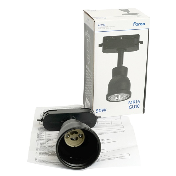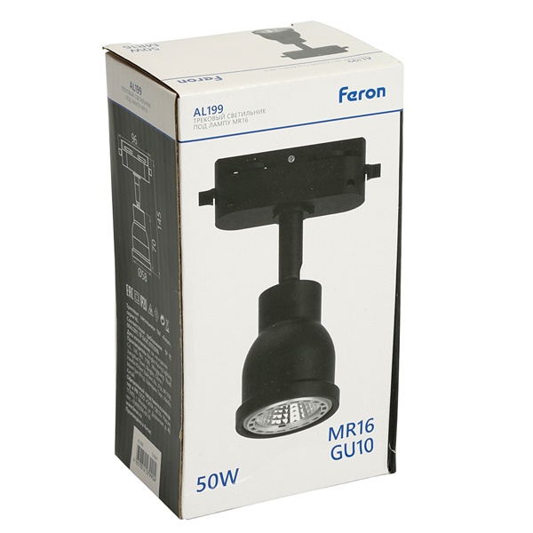 Трековый поворотный светильник Ферон AL199 на однофазный шинопровод, для ламп MR16 с цоколем GU10, максимальной мощностью 50 Вт, черный цвет 51667 Трековые светильники TM FERON - это современное и универсальное решение для организации акцентного освещения в интерьере. Они идеально подходят для выделения отдельных зон и элементов декора, помогая создать выразительную и функциональную световую среду.