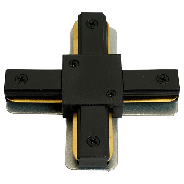 Х-образный однофазный коннектор предназначен для соединения четырех участков шинопровода под прямым углом, образуя перекрестное соединение в единой электрической цепи. Он служит элементом крепления и стыковки, с помощью которого осуществляется монтаж шинопровода по периметру помещения, а также создание разветвлённых схем освещения любой конфигурации.