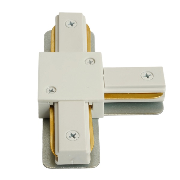 Коннектор Т-образный однофазный для шинопровода — это соединительный элемент, предназначенный для организации ответвлений и соединения трех участков однофазного трекового шинопровода под углом 90°. С его помощью можно легко реализовать Т-образные соединения при монтаже осветительных систем.