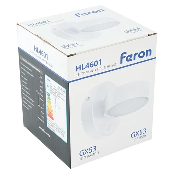 51942 Светильник настенный Feron HL4601 GX53 230V max 12W белый D110x100mm