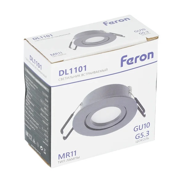 Также в разделе «Встраиваемые точечные светильники MR11, под цоколь G4/G5.3/GU5.3/GU10»:Светильник потолочный встраиваемый Feron DL1101 MR11 G5.3, GU10 белый »