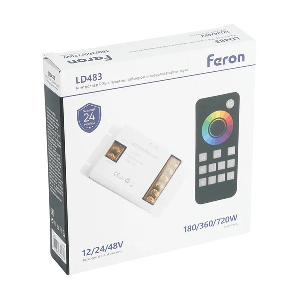 52098 Контроллер RGB для светодиодной ленты LD483 12/24/48V с пультом, таймером и светомузыкой