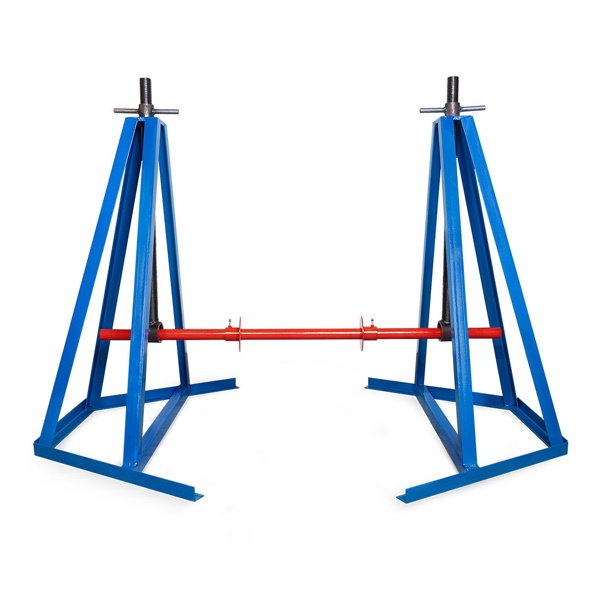 Винтовой домкрат предназначен для подъема и надежного удержания кабельных барабанов на весу во время их размотки. Конструкция домкрата обеспечивает стабильность и безопасность работы, предотвращая случайное смещение или падение барабана. Ось домкрата изготовлена из прочного цельнометаллического прутка, что гарантирует высокую прочность, устойчивость к деформации и долговечность устройства даже при интенсивной эксплуатации.