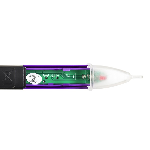 Бесконтактный индикатор переменного напряжения Ermenrich Zing WT20 предназначен для проверки розеток, выявления обрывов в кабелях и определения наличия электрического тока. Устройство питается от двух батареек типа AAA и оснащено встроенным фонариком, который облегчает работу в затемнённых условиях и одновременно служит индикатором уровня заряда батарей.