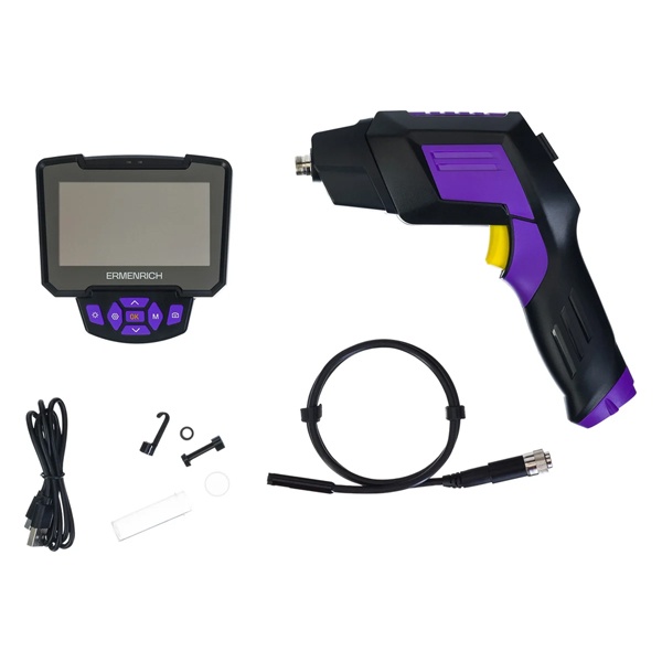Комплектация включает насадки для зонда — магнит, крючок и защитный колпачок, расширяющие функциональность эндоскопа и упрощающие работу с различными объектами. Удобство управления, компактность и высокое качество изображения делают Ermenrich Seek VE60 идеальным инструментом для инспекции сложных и труднодоступных мест.