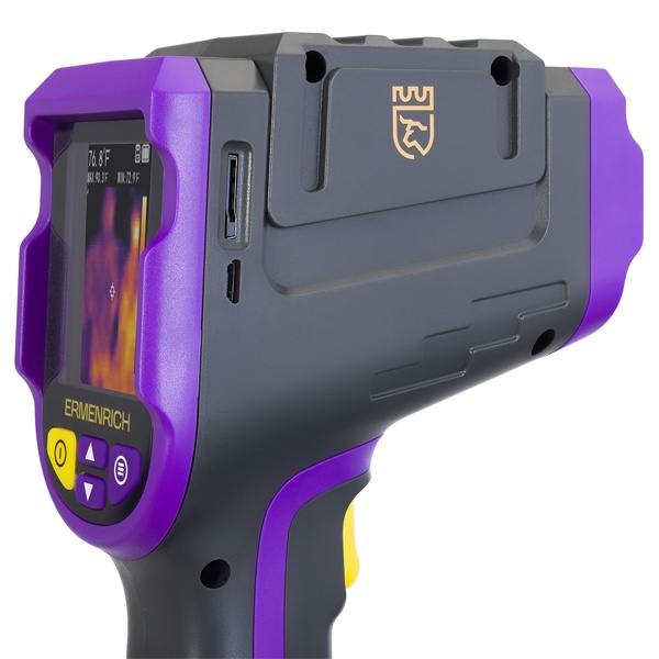 Ermenrich Seek TV50 — это многофункциональный тепловизор в удобном корпусе пистолетного типа, предназначенный для широкого спектра задач: от диагностики теплопотерь в зданиях и контроля теплых полов до обнаружения перегрева в электрических узлах, проведения лабораторных исследований, отлова животных и борьбы с насекомыми.
