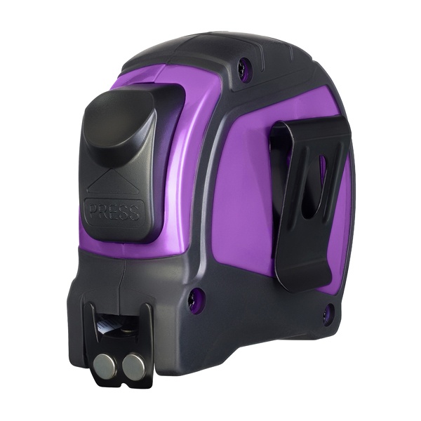Ширина ленты составляет 16 мм. Автоматический стопор и удобное расположение фиксатора позволяют легко работать одной рукой. Корпус рулетки выполнен из ударопрочного прорезиненного пластика — инструмент выдерживает падения с небольшой высоты и уверенно держится даже в мокрой руке. Для комфортной переноски предусмотрены наручный ремешок и поясная клипса.