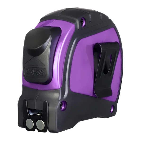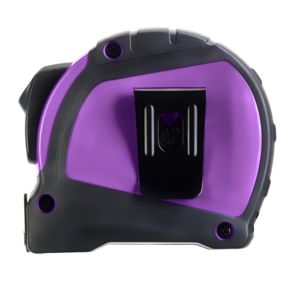 Ширина ленты составляет 19 мм. Автоматический стопор и удобное расположение фиксатора позволяют легко работать одной рукой. Корпус рулетки выполнен из ударопрочного прорезиненного пластика — инструмент выдерживает падения с небольшой высоты и уверенно держится даже в мокрой руке. Для комфортной переноски предусмотрены наручный ремешок и поясная клипса.