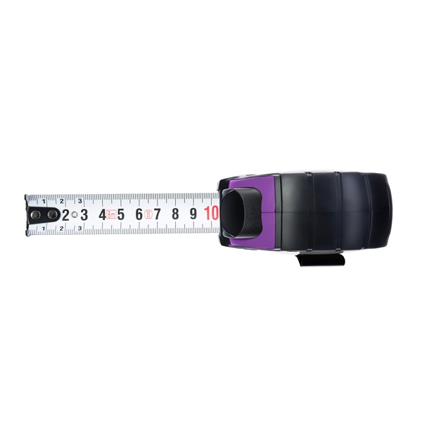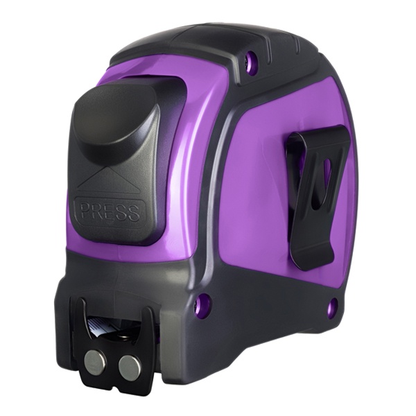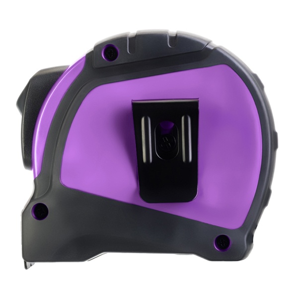 Ширина ленты составляет 25 мм. Автоматический стопор и удобное расположение фиксатора позволяют легко работать одной рукой. Корпус рулетки выполнен из ударопрочного прорезиненного пластика — инструмент выдерживает падения с небольшой высоты и уверенно держится даже в мокрой руке. Для комфортной переноски предусмотрены наручный ремешок и поясная клипса.