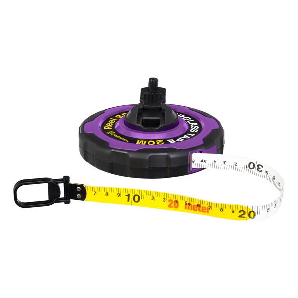 Рулетка измерительная Ermenrich Reel SR30 оснащена 20-метровым полотном из стекловолокна — прочного и износостойкого материала, устойчивого к изломам, истиранию и механическим повреждениям. Лента имеет двустороннюю разметку и снабжена крупным металлическим зацепом. Для сматывания полотна предусмотрена складная катушечная рукоятка.