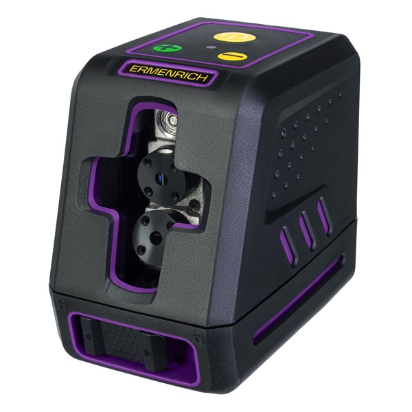 Уровень Ermenrich BASE LT40 оснащен светодиодами и производит две линии: одну по горизонтали, вторую – по вертикали. Лучи зеленого цвета имеют регулировку яркости в пределах 10 степеней. Угол развертки каждого из лучей равен 130 как по вертикали, так и по горизонтали. Прибор подходит для строительных и ремонтных работ в больших пространствах: его луч достигает длины 30 м. Линии самостоятельно выравниваются благодаря встроенному в уровень механизму компенсации.