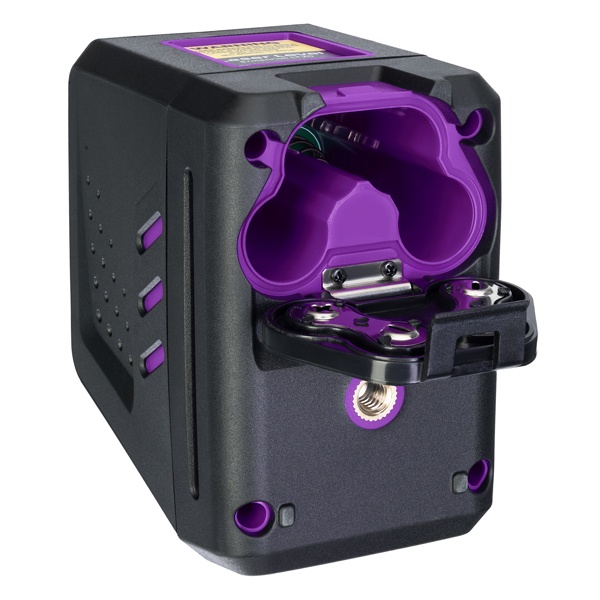 Работы можно проводить, разместив уровень на собственном основании или зафиксировав его на треноге: для этого имеется стандартное крепление 1/4 дюйма. Свет производится от энергии четырех пальчиковых батареек, одного набора хватит на 10 часов работы при максимальной яркости. Корпус лазера защищен от пыли и влаги (маркировка IP54) и подходит для применения в помещениях, где производится ремонт, а значит, есть пылевое загрязнение и может присутствовать распыление воды.
