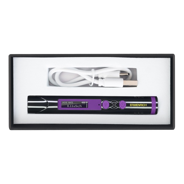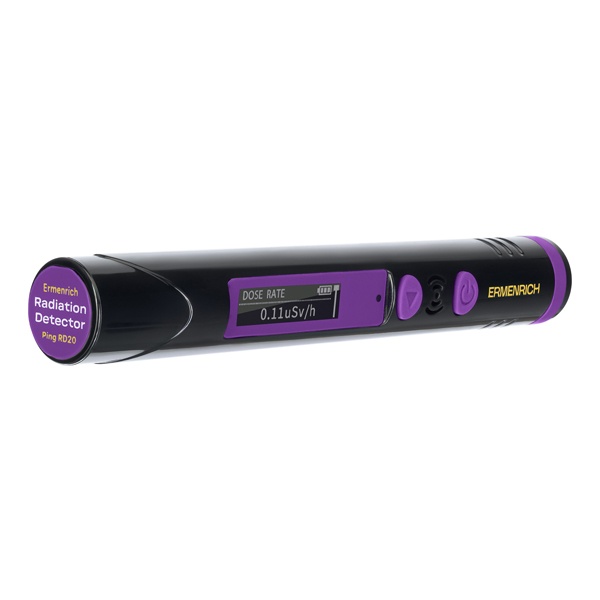 Ermenrich Ping RD20 — компактный портативный цифровой дозиметр, предназначенный для измерения радиационного фона в окружающей среде, включая воду и различные объекты. Для отображения результатов прибор оснащён небольшим однострочным OLED-дисплеем.