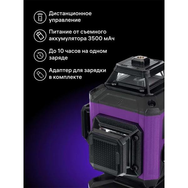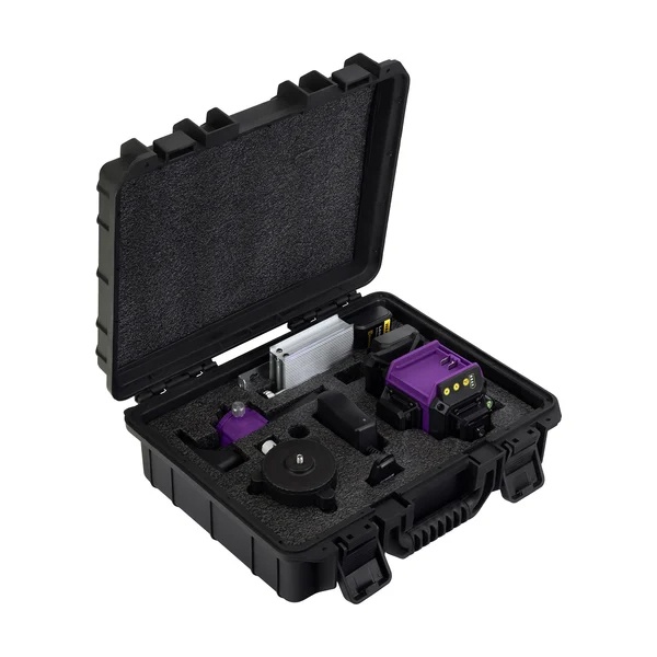 Прибор проецирует 16 ярких зелёных лазерных линий в трёх плоскостях — это обеспечивает полный обзор на 360° по горизонтали и две плоскости по вертикали. Такая конфигурация позволяет работать как с небольшими, так и с крупными поверхностями — рабочий диапазон до 30 метров.