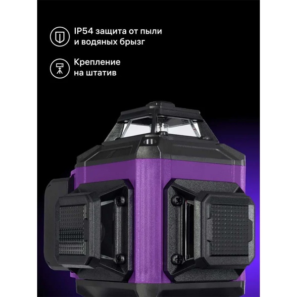 Встроенный компенсатор вибраций автоматически устраняет мелкие колебания, обеспечивая стабильную и точную разметку. Для повышения эффективности можно использовать прибор с лазероприемником — он уже входит в комплект, докупать ничего не нужно.