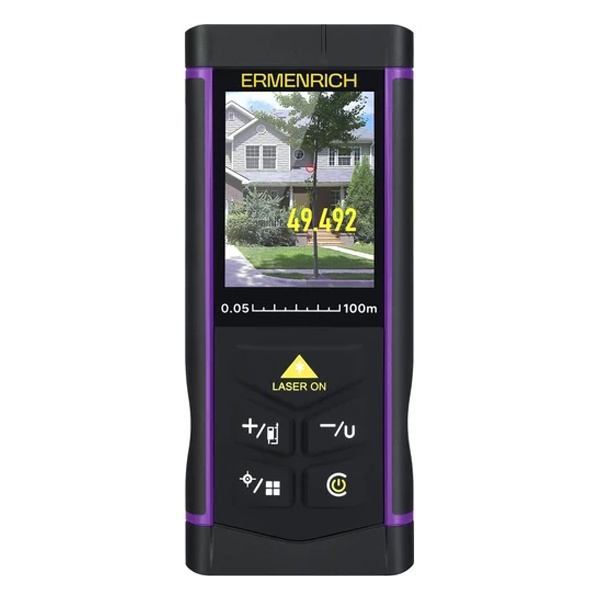 Лазерная рулетка Ermenrich PRO LR100 предназначена для работы на расстояниях до 100 метров и идеально подходит для уличных условий. Модель оснащена цифровым видоискателем, благодаря которому на встроенном экране одновременно отображается результат измерения, окружающий ландшафт и точка, до которой проводится измерение. Такая визуализация гарантирует высокую точность и уверенность в том, что замер выполняется именно по выбранному объекту. Рулетка с камерой эффективно решает как бытовые задачи при ремонте и отделке квартиры, так и профессиональные задачи при масштабном строительстве и инженерных проектах.