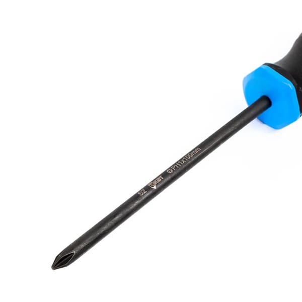 Отвертки оснащены намагниченными наконечниками, которые надежно удерживают крепеж и повышают удобство работы. Эргономичная двухкомпонентная рукоятка с нескользящим покрытием обеспечивает уверенный хват и снижает утомляемость при длительном использовании. Специальная защита от скатывания предотвращает падение инструмента с рабочей поверхности. Для быстрого выбора нужной отвертки на торце рукоятки предусмотрена маркировка профиля.