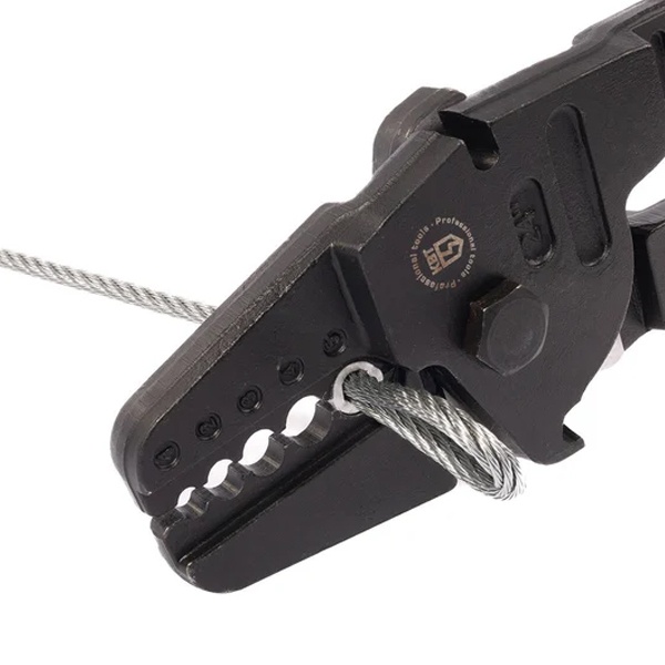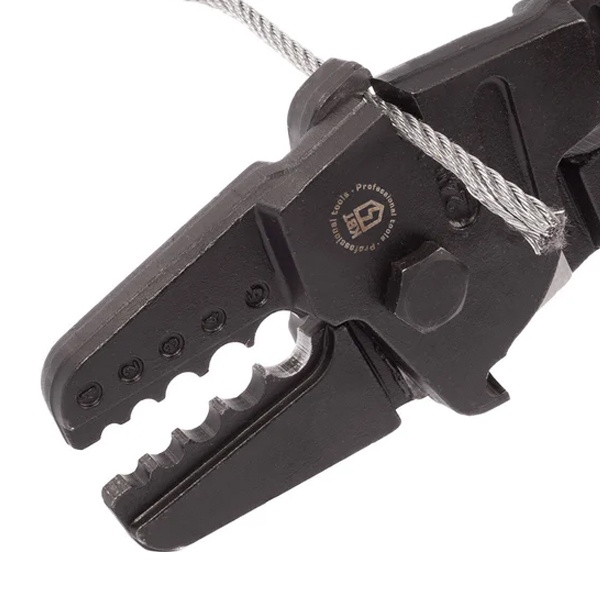 Характеристики: Размеры опрессовываемых тросов: 2/2.5/3/3.5/4/5 мм; Два встроенных модуля для резки тросов: до 5 мм Профиль обжима: круглый Длина инструмента: 650 мм